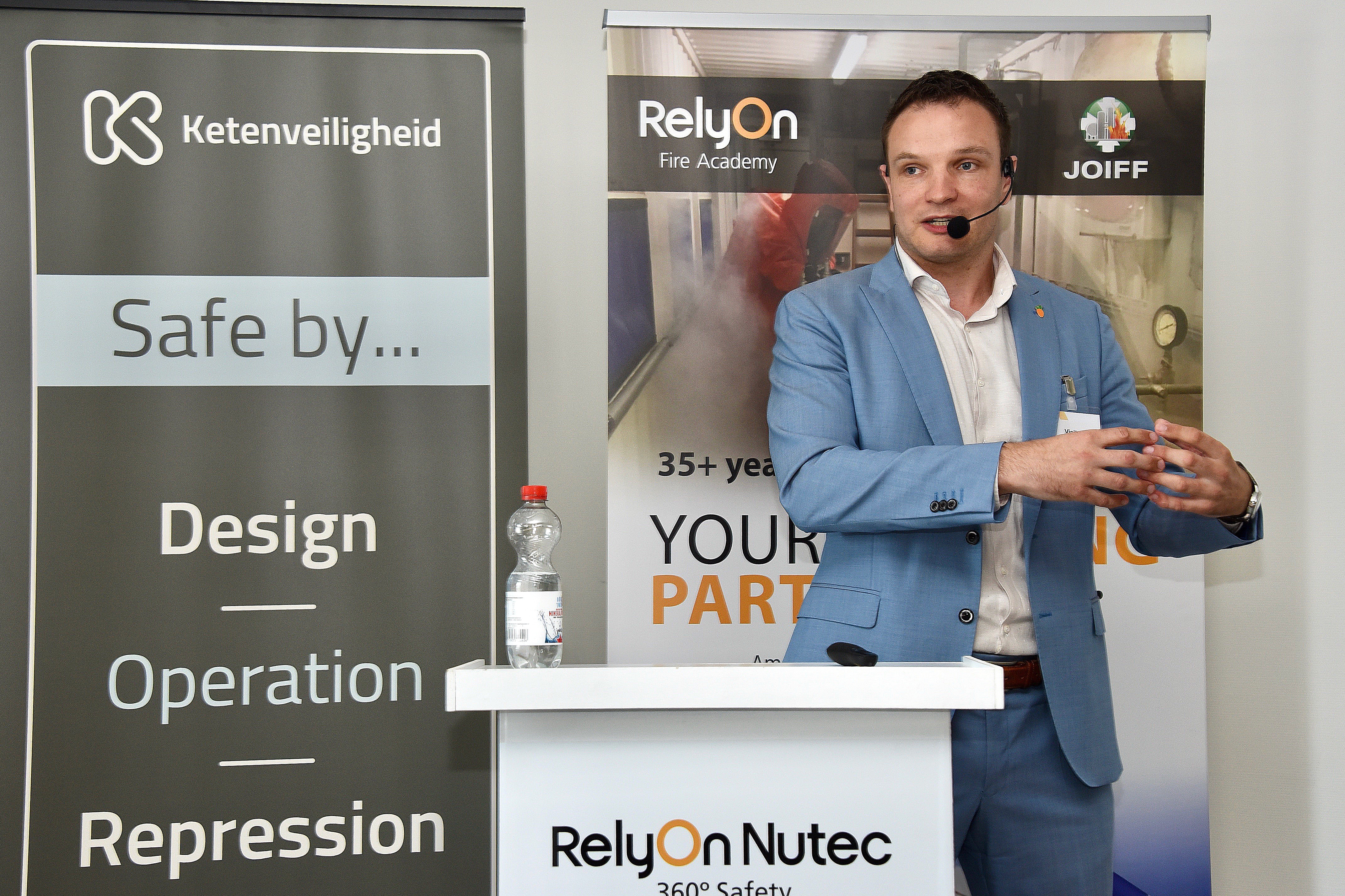 “Wat je ziet is niet altijd gevaarlijk. En wat gevaarlijk is, zie je niet altijd.”Martin Meijer, voormalig adviseur en huidig docent gevaarlijke stoffen, nam het publiek mee in de wereld van incidentbestrijding. Zijn kernboodschap: elk type brandstof vraagt om een unieke repressieve aan-pak, gebaseerd op realistische proeven.